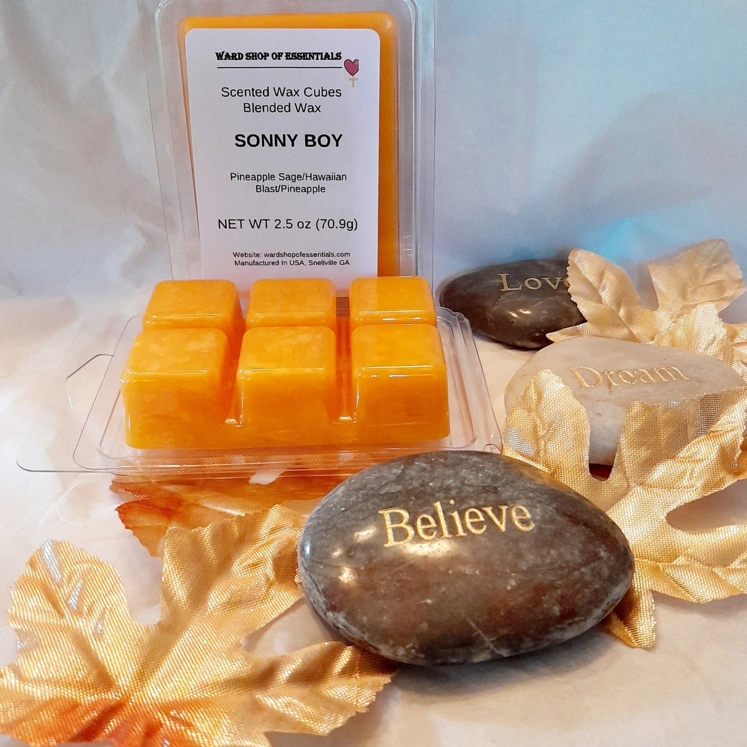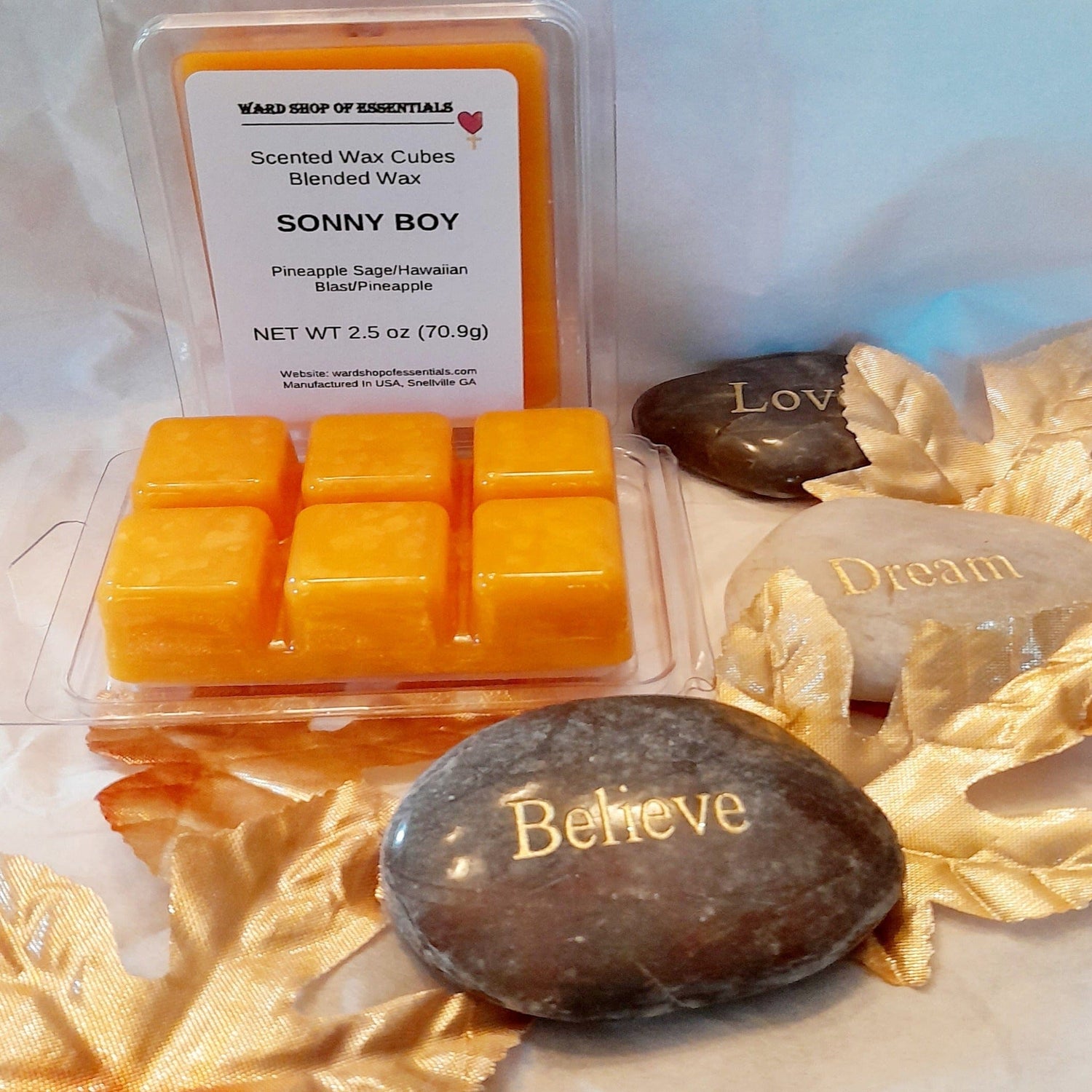 Memories that make you smile. Capture a heart that is so giving. A smile as bright as the sun. Let the pure rich blends of this candle aroma flow through your space and turn your rainy days into sun shine. Gift this hand crafted made in the USA of Georgia Sonny Boy candle and brighten someone day. The beautiful unique color compliments any room. The long lasting burn time is great for any gathering or event held indoors and outdoors. Several option to choose from such as melts, black tins, gold tins, silver tins and glass jars. Sizes range from 4oz, 8oz, and 16oz. In addition to size you also can choose single wick, double wick and triple wick.